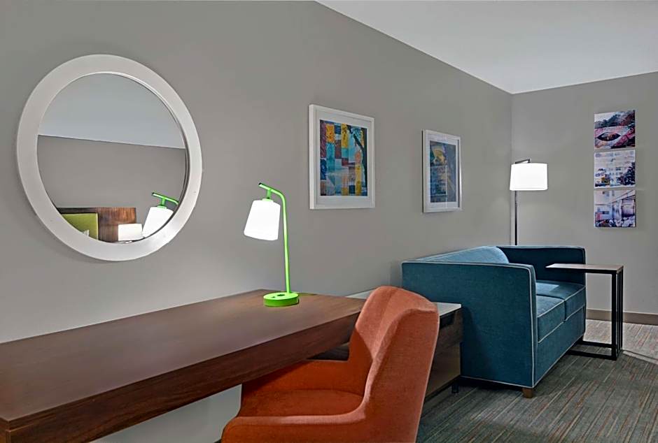 Studio offers an open floor plan with a spacious sitting area, microwave and refrigerator.